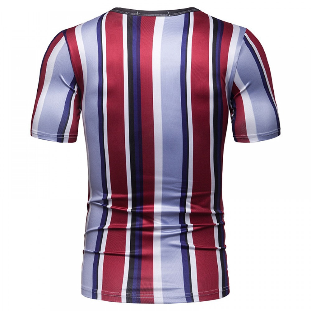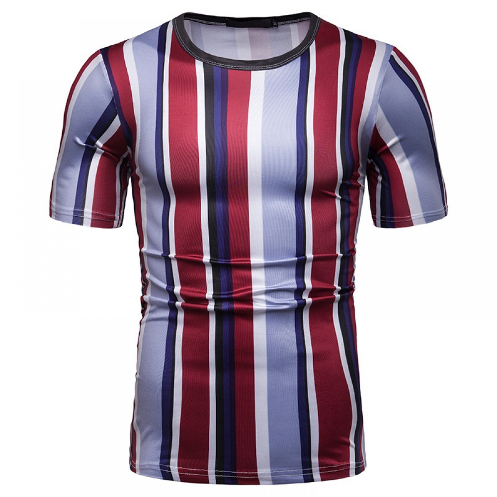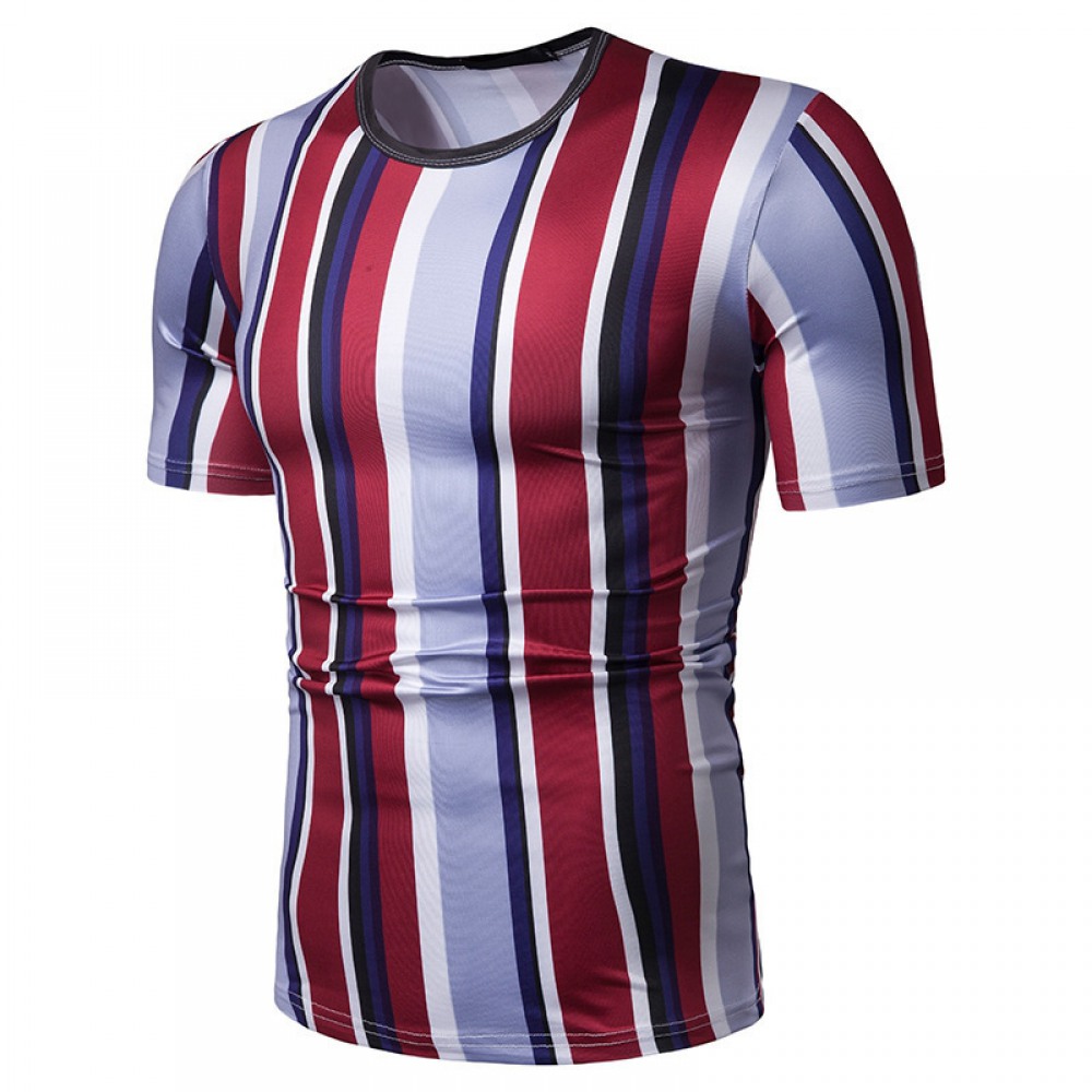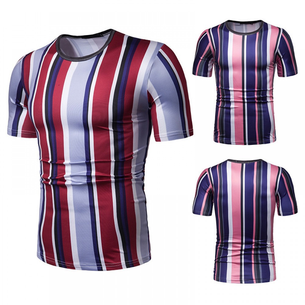 New Summer Men's Short-Sleeved T-Shirt Mens Contrast Striped Slim Casual T-Shirt
