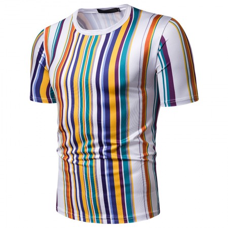 New Summer Men's Short-Sleeved T-Shirt Men's Contrast Striped Slim Casual T-Shirt